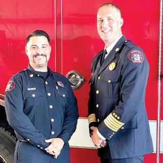 El jefe de bomberos Jack Snyder (derecha) ascendió a Jesús Márquez (izquierda) al puesto de capitán de bomberos a finales de Julio. Márquez había ocupado previamente el puesto de capitán de bomberos interino.