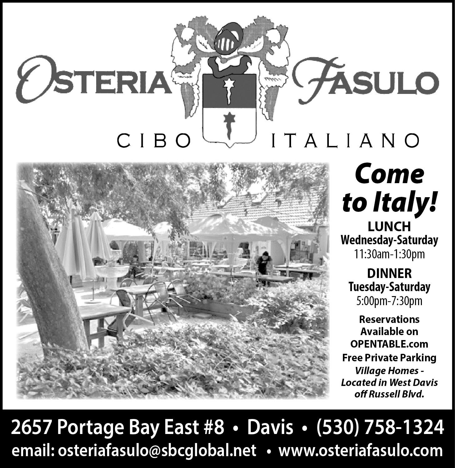 PHONE, MAIL OR EMAIL Home delivery: 530-756-0826; P.O. Box 1470 Davis, CA 95617-1470 Delivery phone hours : Mon.-Fri. 9 a.m.-1 p.m.; Sun. 7-10 a.m. Business office: 530-756-0800 Hours: Mon. - Fri. 9 a.m. - 4 p.m. EMAIL News newsroom@davisenterprise.net Sports sports@davisenterprise.net Home Delivery circulation@davisenterprise.net Classifieds classads@davisenterprise.net Advertising ads@davisenterprise.net Legal Notices legals@davisenterprise.net Obituaries obit@davisenterprise.net Production graphics@davisenterprise.net ON THE WEB www.davisenterprise.com Copyright 2023 If you do not receive your Enterprise by 5 p.m. on Sundays or Fridays or 7 a.m. on Sundays, please call 530-7560826. Missed issues will be delivered on the next publishing day. HOME DELIVERY HOW TO REACH US About us 2023 Member California News Publishers Association Certified Audit of Circulations A2 THE DAVIS ENTERPRISE SUNDAY, AUGUST 6, 2023 The Davis Enterprise is published Sundays, Fridays and Sundays by The Davis Enterprise Inc., 315 G Street, Davis, CA 95616. Application to Mail at Periodicals Postage Prices is Pending at Davis, CA. POSTMASTER: Send address changes to to The Davis Enterprise, P.O. Box 1470, Davis, CA 95617-1470. Phone 530-756-0800