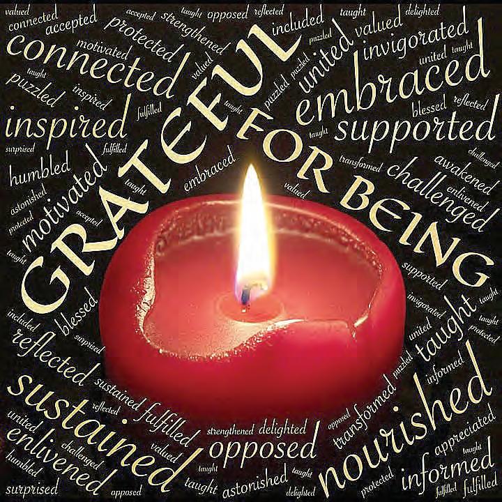 com to search for a wise saying to start this column about gratitude with. There were some really great ones, but they all kinda sounded like the things you see on those inspira tional posters with like, a picture of a mountain range or something in a cheap frame in your dentist’s waiting room.
