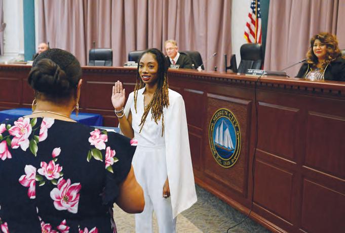 She took her oath of office from Assembly woman Lori Wilson, who was the first Black woman to hold the office, and fol lowed the oath to Larry Brumfield, who became the first Black man to be the city’s mayor, albeit