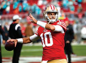 Garoppolo, prior to getting sacked and injured on his eighth play Sunday, was playing the most efficient football of his career. He’s gone 141 consecutive passes without an interception, a stretch that began after halftime of the 49ers’ last loss ( Oct. 23 against Kansas City). He’s com pleted 88-of-123 passes (71.5 percent) for 980 yards and five touchdowns in the four wins that pre ceded Sunday’s victory over Miami.