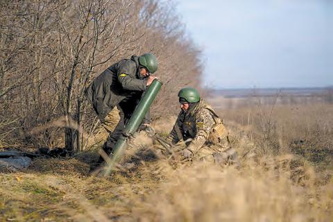 Ukrainian soldiers from the 68th brigade fire a mortar launcher at a position along the front line in Donetsk region amid the Russian invasion of Ukraine, Dec. 9.