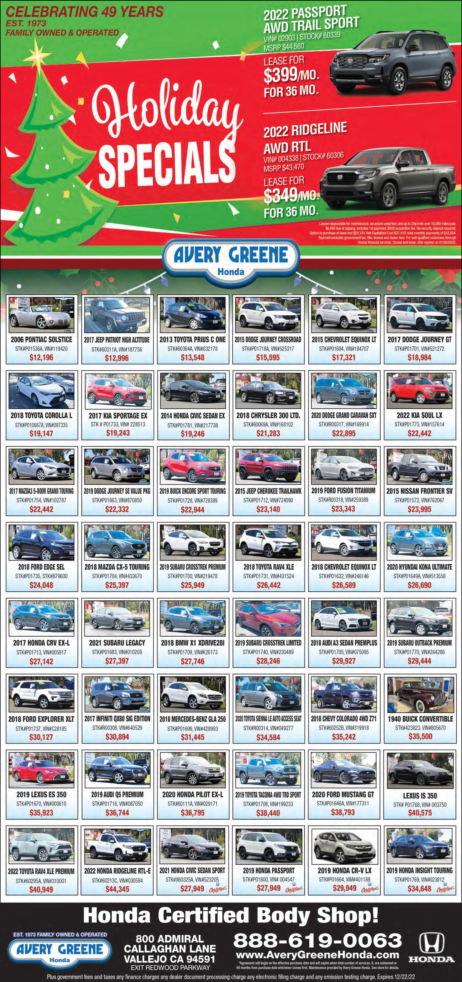 See Price, Page A10 B Big g Savings Bg 395-A E. Monte Vista Ave., Vacaville 707.449.6385 LaineysFurnitureForLiving.com Vacaville sta Ave V 30% OFF •Lamps • Wall & Table Decor Home Accessories! Bedroom & Dining Room Sale ends 12/15/2022 &Dii R d B 20% OFF & Room Beedroom 10% OFF Special Orders! INDEX Business A7 | Classfieds B9 | Comics B11 | Crossword B8 Diversions B1 | Living B8 | Obituaries A4 | Opinion A9 Religion B4 | Sports B6 | TV Daily A8 WEATHER 53 | 32 Sunny. Five-day forecast on B12 Longtime mayor, 6-decade community icon Harry Price dies