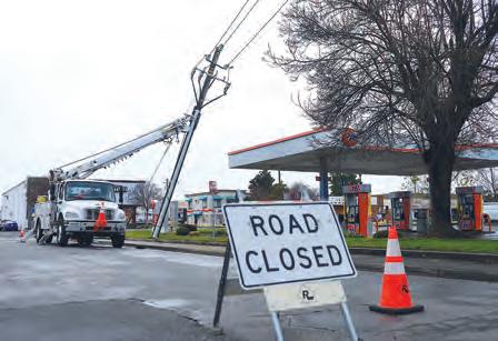 A utility pole is braced to prevent it from falling along 1st Street near West Texas Street in Fairfield, Monday. Storm death toll reaches 17 as more rain, winds arrive Damage could top $1 billion Josh Edelson/AFP/Getty Images/TNS Vehicles move through a flooded road in Merced, Tuesday.