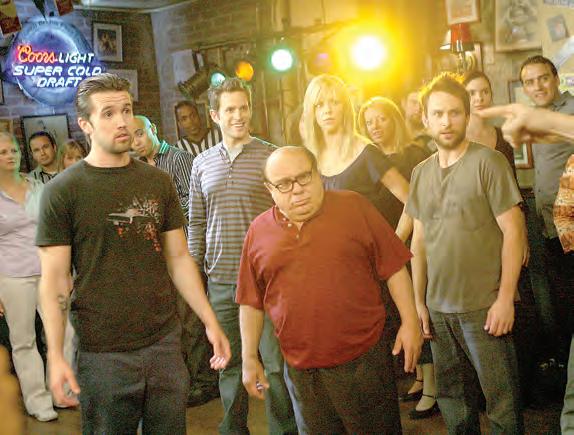 Left to right, actors Rob McElhenney, Glenn Howerton, Kaitlin Olson, Danny DeVito and Charlie Day act during a dance scene on the set of “It’s Always Sunny In Philadelphia,” in Los Angeles, May 23, 2007.