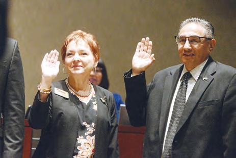Judge Wendy Getty, the presiding judge for the Solano County Superior Court, then issued the oaths, as a group, to Glenn Zook, first-term assessorrecorder; Chuck Lomeli, seven-term treasurertax collector-county clerk; Supervisor John Vasquez, starting his fifth term; three-term District Attorney Krishna Abrams; Lisette EstrellaHenderson, appointed in 2017, she has won two additional terms; and twoterm Auditor-Controller