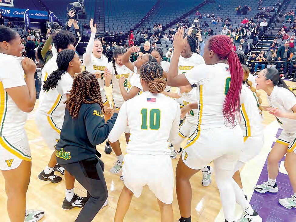 Vanden had a 37-31 lead after three quarters with just a 9-8 advantage in the period. But that changed in the fourth when they closed out with a 25-11 run. They soon dribbled out the clock and had the chance to celebrate on the logo of the Sacramento Kings at center court.