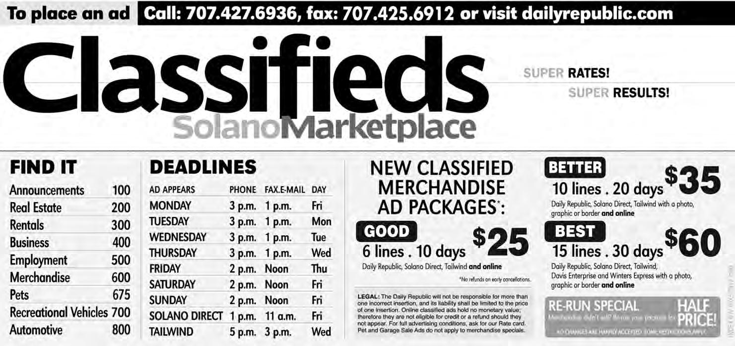 Online:dailyrepublic.com/classifieds B6 Wednesday, April 5, 2023 — DAILY REPUBLIC Classifieds: 707-427-6936