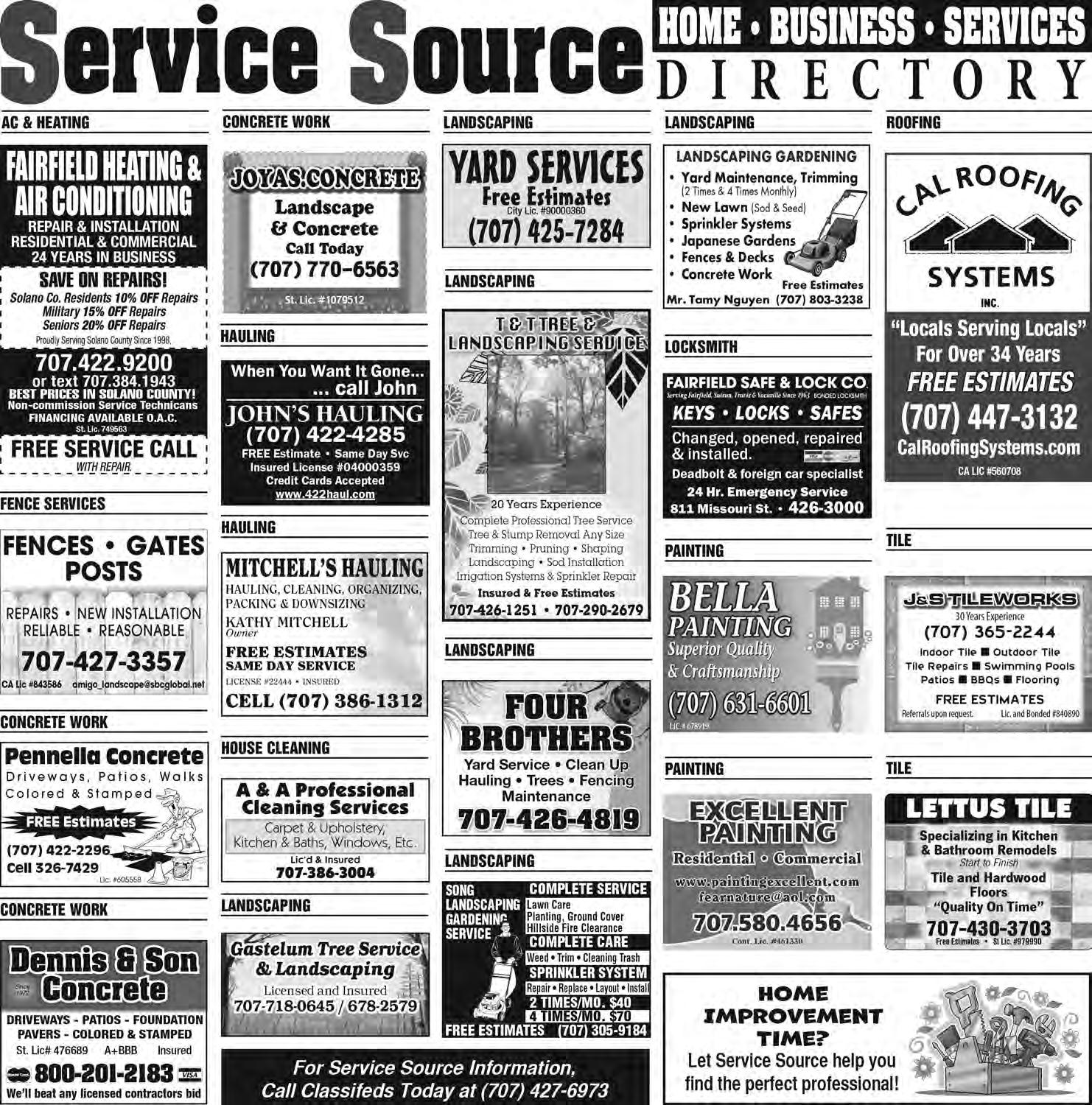 Published:March22,29April5,12,2023 Offer your home improvement expertise & services in Solano County's largest circulated newspaper. Achieve great results by advertising in S Service Source Call M-F 9am-5pm (707) 427-6922 Disclaimer: L LOST AND FOUND ads are published for 7 days - FREE. Call Daily Republic's Classified Advertising Dept. for details. (707) 427-6936 Mon.- Fri., 8am5pm Disclaimer: GIVEAWAYS is FREE advertising for merchandise being given away by the advertiser (not for businesses, services or promotional use). Limited to 1 ad of like item(s) per customer in a 60 day period. 4 line max. for all ads. Ads are published for 3 consecutive days in the Daily Republic, 1 time in Friday's Tailwind. Informational: A cord of wood shall measure 4x4x8 and be accompanied by a receipt. Please report any discrepancies to: The Department of Agricultural / Weights and Measures at (707) 784-1310 SELL YOUR STUFF Daily Republic Classifieds dailyrepublic com Disclaimer: Please Check Your Ad The First Day It Is Published and notify us immediately if there is an error. The Daily Republic is not responsible for errors or omissions after the first day of publication. The Daily Republic accepts no liability greater than the cost of the ad on the day there was an error or omission. Classified line ads that appear online hold no monetary value; therefore, they are not eligible for credit or a refund should they not appear online. Visit PetHarbor.com Uniting Pets & People FREE WOOD PALLETS PICK UP AT BACK OF DAILY REPUBLIC 1250 TEXAS ST. TUESDAY - FRIDAY, 8AM -5PM. 1st COME, 1st SERVE CONTACT US FIRST Solano County Animal Shelter 2510 Claybank Rd Fairfield (707) 784-1356 solano-shelter petfinder com YORKIE, AKC Females, dew claws claws & tails docked, first shots & vet check all documents, ready to go March 18, $1500 each must Text for details. 916-832-3275 SELF STORAGE MANAGER F/T Tues-Sat. Storage or property manager exp pref. Mgr apt may be avail after 3-6 mos. $20-24/ hr DOE. Drop off resume at 515 Railroad Ave, Suisun City 0103 LOST AND FOUND 0107 SPECIAL NOTICES 0501 HELP WANTED 0629 FIREWOOD 0633 GIVEAWAYS 0637 HOME IMPROV/ BLDG. MAT. 0641 MISC. FOR SALE OR TRADE 0677 PETS & SUPPLIES Daily Republic 427-6936 www.dailyrepublic.com When you’re looking for a new place, jump into action with the classifieds.