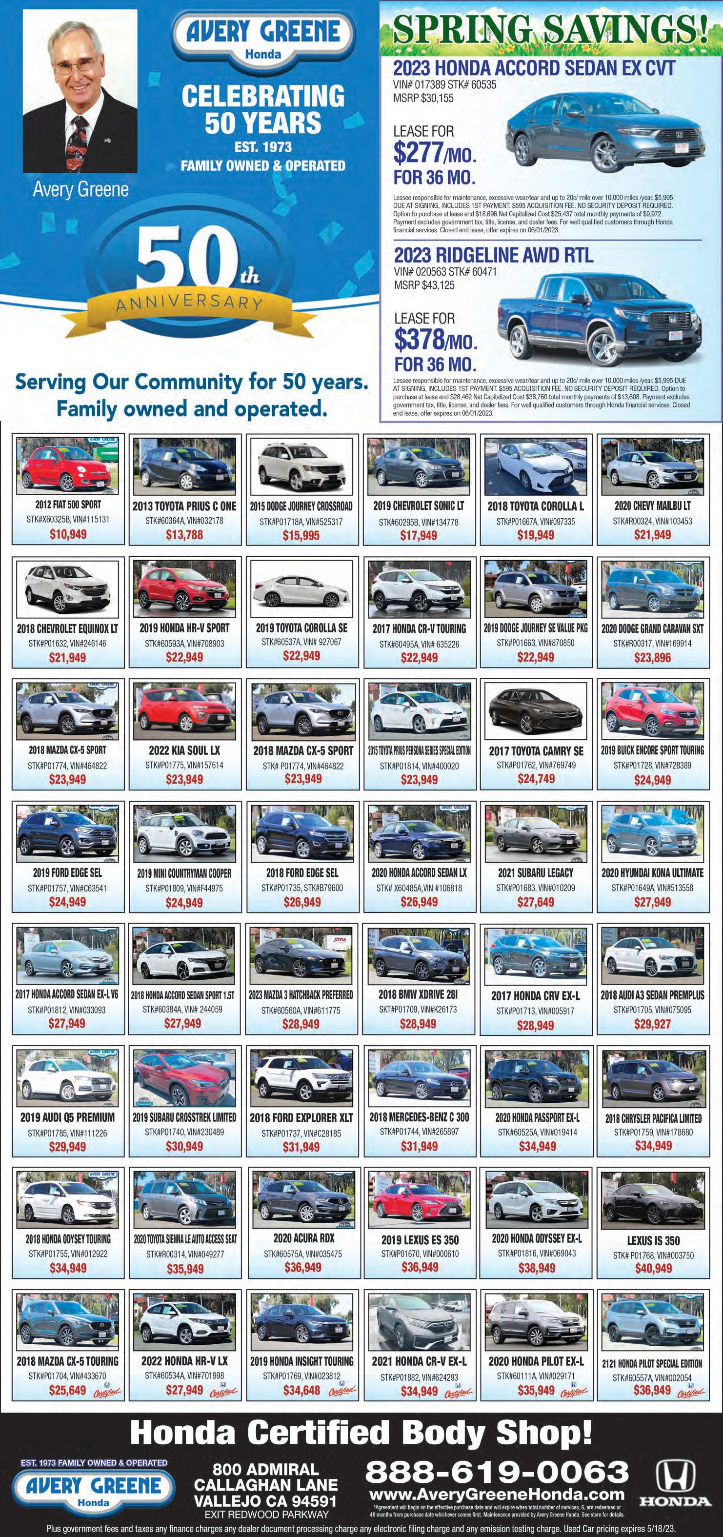 Online:dailyrepublic.com/classifieds B10 Sunday, May 14, 2023 — DAILY REPUBLIC Classifieds: 707-427-6936 Sylvia Cole & Associate REALTOR® BRE#01386900 (707) 330-892 Open House Saturday 1-3PM 1994 Clyde Jean Place, Fairfield Previous model home w/$140K in upgrades & spectacular views! Beautiful 4/3. Rich in detail & luxury amenities. Expansive primary ste. Too much to list! $750,000 OPEN HOUSE Patty Ash & Associate REALTOR® BRE#01992355 (707) 410-9353 Open House Saturday 1-3PM 3716 Chapparal Ct, Fairfield Spacious 4/2.5 on almost a third of an acre. Grand entry, cathedral ceilings, engineered hardwood flooring & fp in formal living & dining room. Kitchen boasts SS applncs, island & breakfast nook. FR w/wet bar & 2nd fp. Beautiful byard. $725,000 OPEN HOUSE Robin Stucker & Associate REALTORS® DRE#01347484 (707) 688-7966 Open House Saturday 1-3PM 161 Hillview Drive, Vacaville NEW PRICE & MOTIVATED SELLERS! Custom 3bd/2.5ba w/over $200K in recent updates/ upgrades! Remodeled kitchen. New LV T flrs thruout living areas, master bath, paint, electrical panel, windows & blinds+. New garage door & epoxy flrs. $860,000 OPEN HOUSE ON THE M ARKET FOR THIS WEEKEND May 13th & 14th Offer your home improvement expertise & services in Solano County's largest circulated newspaper. Achieve great results by advertising in Service Source Call M-F 9am-5pm (707) 427-6922 Disclaimer: L LOST AND FOUND ads are published for 7 days - FREE. Call Daily Republic's Classified Advertising Dept. for details. (707) 427-6936 Mon.- Fri., 8am5pm Disclaimer: GIVEAWAYS is FREE advertising for merchandise being given away by the advertiser (not for businesses, services or promotional use). Limited to 1 ad of like item(s) per customer in a 60 day period. 4 line max. for all ads. Ads are published for 3 consecutive days in the Daily Republic, 1 time in Friday's Tailwind. Informational: A cord of wood shall measure 4x4x8 and be accompanied by a receipt. Please report any discrepancies to: The Department of Agricultural / Weights and Measures at (707) 784-1310 SELL YOUR STUFF Daily Republic Classifieds dailyrepublic com Disclaimer: F Fair Housing is the Law! The mission of the Department of Fair Employment and Housing is to protect the people of California from unlawful discrimination in employment, housing and public accommodations. The Daily Republic will not knowingly accept any ad which is in violation of the Federal Fair Housing Act and the California Fair Employment and Housing Act which ban discrimination based on race, color, national origin, sex, r eligion, sexual orientation, age, disability, familial status, and marital status. Describe the Property Not the Tenant Disclaimer: Please Check Your Ad The First Day It Is Publ shed and notify us immediately if there is an error. The Daily Republic is not responsible for errors or omissions after the first day of publication. The Daily Republic accepts no liability greater than the cost of the ad on the day there was an error or omission. Classified line ads that appear online hold no monetary value; therefore, they are not eligible for credit or a refund should they not appear online. Visit PetHarbor.com Uniting Pets & People FREE WOOD PALLETS PICK UP AT BACK OF DAILY REPUBLIC 1250 TEXAS ST. TUESDAY - FRIDAY, 8AM -5PM. 1st COME, 1st SERVE CONTACT US FIRST Solano County Animal Shelter 2510 Claybank Rd Fairfield (707) 784-1356 solano-shelter petfinder com San Jose Care Home C orporation seek s C aregiver in Fairfiel d C A to assist adult r esidents. H.S. Dipl oma + 3 mos exp. Email resume: Corazon Lalic at: corazonlalic@ yahoo.com 0103 LOST AND FOUND 0633 GIVEAWAYS 0501 HELP WANTED 0637 HOME IMPROV/ BLDG. MAT. 427-6936 dailyrepublic.com DAILY REPUBLIC Classifieds 0201 REAL ESTATE SERVICE/LOANS 0107 SPECIAL NOTICES 0629 FIREWOOD We give your classified ad increased exposure because when you place an ad in our newspaper, we automatically post it on the world wide web via our on-line classifieds! Best of all, you still pay the same low price. So whatever it is you’re selling, it makes “cents” to sell it with us and reach more potential buyers - in print and on-line! puthere y our classified ad Call 707-427-6936 today! CLASSIFIEDS dailyrepublic.com DAILY REPUBLIC YOU’RE ONLY AN AD AWAY FROM A CLEAN GARAGE. Get an ad. Get rid of your stuff. Get some money! DAILY REPUBLIC CLASSIFIEDS (707) 427-6936 Call CLASSIFIEDS (707) 427-6936 Find It Here Classifieds www.dailyrepublic.com 707-427-6936