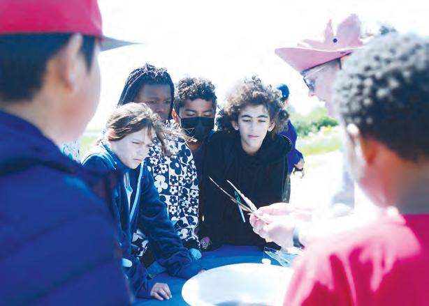 Various Nelda Mundy fifth-graders were guided through a mile-long nature walk, with various learning stops, by volunteers from the International Bird Rescue.