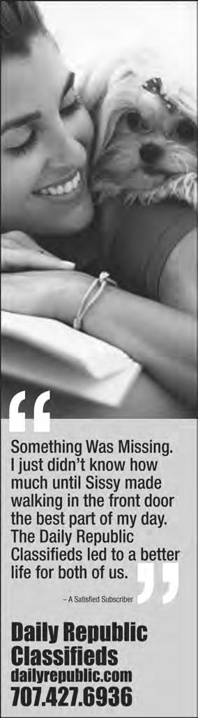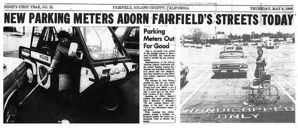 DAILY REPUBLIC Published by McNaughton Newspapers 1250 Texas Street, Fairfield, CA 94533 Home delivered newspapers should arrive by 7 a.m. daily except Tuesday, Thursday and Saturday (many areas receive earlier delivery). For those receiving a sample delivery, to “OPT-OUT,” call the Circulation Department at 707-427-6989. Suggested subscription rates: Daily Print: $4.12/week Online: $3.23/week EZ-PAY: $14.10/mo. WHOM TO CALL Subscriber services, delivery problems 707-427-6989 To place a classified ad 707-427-6936 To place a classified ad after 5 p.m. 707-427-6936 To place display advertising 707-425-4646 Publisher Foy McNaughton 707-427-6962 Co-Publisher T. Burt McNaughton 707-427-6943 Advertising Director Louis Codone 707-427-6937 Main switchboard 707-425-4646 Daily Republic FAX 707-425-5924 NEWS DEPARTMENT Managing Editor Sebastian Oñate 707-427-6925 Sports Editor Matt Miller 707-427-6995 Photo Editor Robinson Kuntz 707-427-6915 E-MAIL ADDRESSES President/CEO/Publisher Foy McNaughton fmcnaughton@dailyrepublic.net Co-Publisher T. Burt McNaughton tbmcnaughton@dailyrepublic.net Managing Editor Sebastian Oñate sebastian.onate@mcnaughton.media Classified ads drclass@dailyrepublic.net Circulation drcirc@dailyrepublic.net Postmaster: Send address changes to Daily Republic, P.O. Box 47, Fairfield, CA 94533-0747. Periodicals postage paid at Fairfield, CA 94533. Published by McNaughton Newspapers. (ISNN) 0746-5858 (707) 450-1170 1111 Ulatis Drive Vacaville, CA 95687 MagnoliaCourtCA.com Taste & Sip Open House Saturday, May 20, 10am–2pm Preview our recently remodeled community and furnished model apartments, all while enjoying our chef ’s selection of food and wine pairings. Call (707) 450-1170 or email mcevents@fieldsseniorliving.com. IT’S YOUR CHOICE Reserve your place by May 31 to choose the monthly payment plan that works best for you! Limited time offer while supplies last. Call for details. Courtesy photos Vintage newspaper clippings and pictures from the past about parking. CALL 707-427-6989 TODAY TO SUBSCRIBE STAY CONNECTED WITH YOUR HOMETOWN NEWS