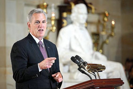 Mandel Ngan/AFP via Getty Images/TNS House Speaker Kevin McCarthy, R-Calif., speaks during a portrait unveiling for former house speaker Paul Ryan in Statuary Hall at the U.S. Capitol in Washington, D.C., Wednesday.