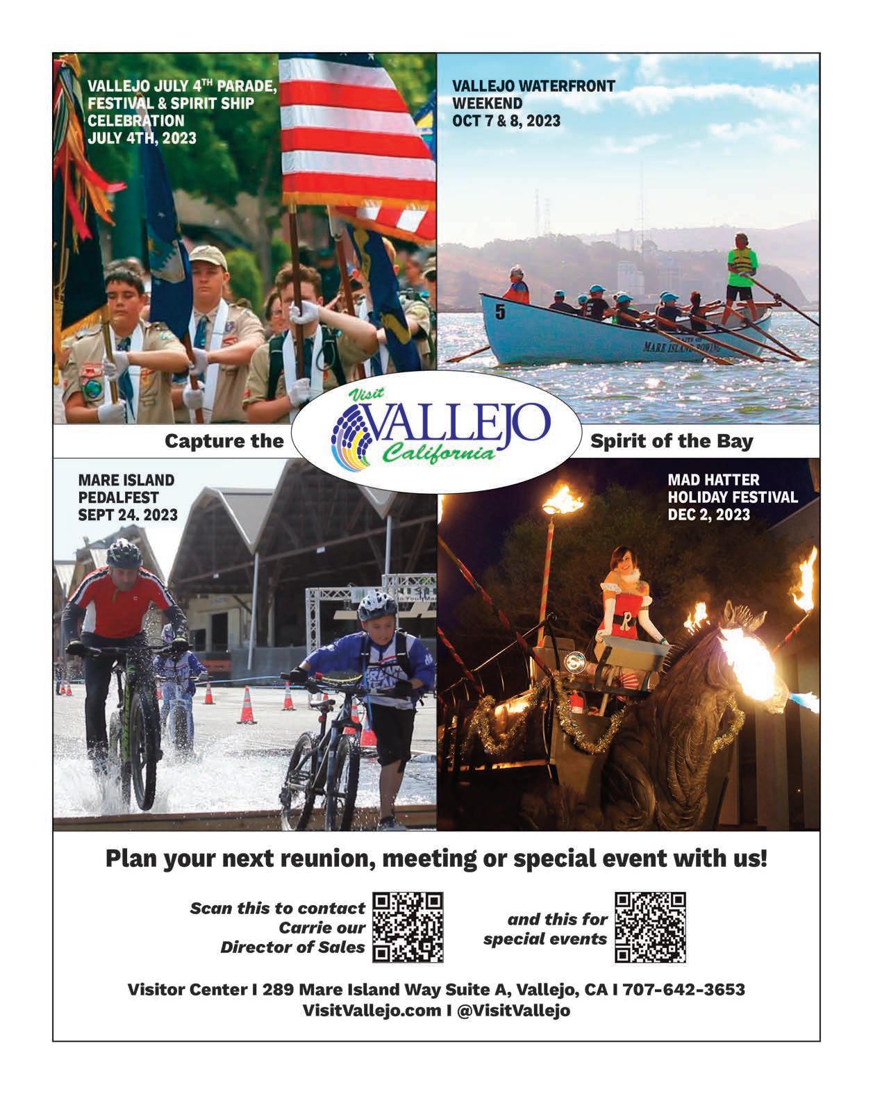 VALLEJO FOURTH OF JULY CELEBRATION: The Vallejo Parade Association, a local nonprofit organization, presents the 168th Vallejo Fourth of July Parade with “Step Off” at 10 a.m. July 4. This year’s theme is “American Dreamin’.” The parade starts at Tennessee Street and Broadway and takes the traditional route west to Sonoma Boulevard, then south on Sonoma Street, then west again on Georgina Street, through the downtown to end on Georgia and Santa Clara streets. vallejojuly4.com.