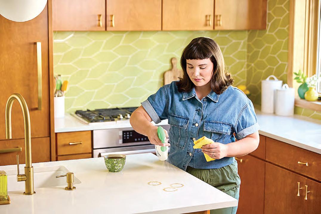 Busy homes prone to tough messes need a concentrated formula that offers a reliable and effective way to remove anything from pet-related stains to crayon marks on the wall, lipstick on clothing, and grease in the kitchen and garage. That’s where a solu tion like Krud Kutter Original comes into play. The “duct tape of cleaning,” make it your go-to solution for both hard surfaces like walls, kitchen cabinets and garage floors, and soft surfaces like carpet and fabric. The beauty of a concentrated formula is that you can use it at full strength for removing paints, grease and oil, or dilute it for lighter cleaning tasks. In any case, apply your formula directly on the surface to be cleaned, allow to sit briefly, then wipe off with a clean cloth or towel. For tougher jobs, apply liberally and allow to stand for a few minutes before scrubbing with a brush or scouring pad, then wiping with a wet rag.