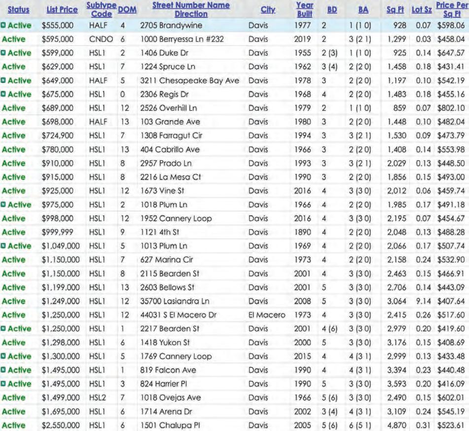 There are currently 94 active and 37 pending listings in the Davis market.
