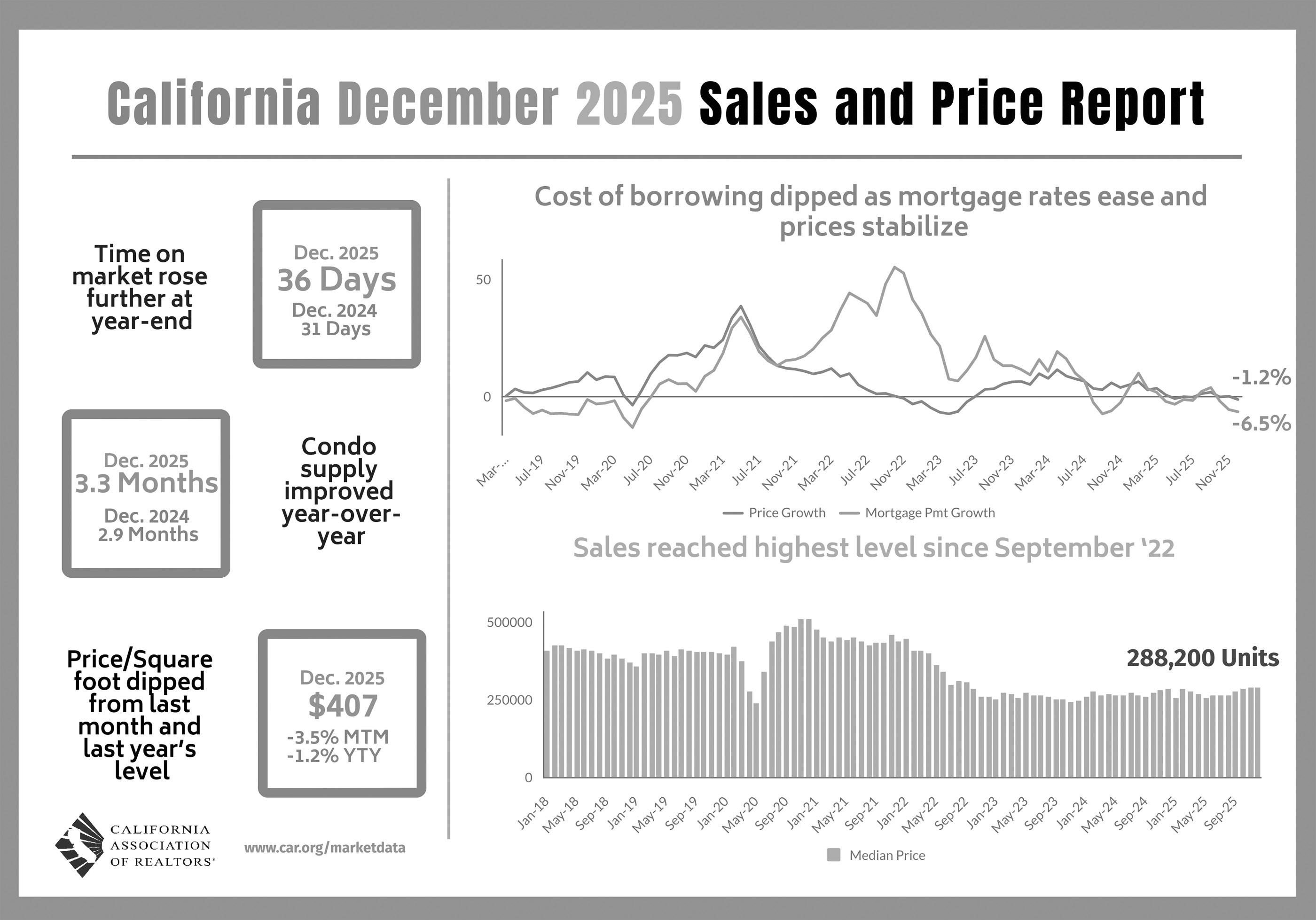 California broker and Realtor. “As price growth eased toward the end of the year and mortgage rates fell to near-three-year lows, the stage is set for a more optimistic 2026.