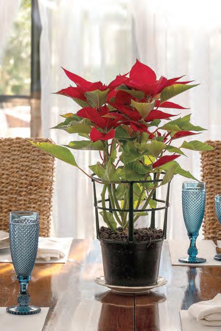 To determine whether it’s time to water your poinsettia, stick a finger in the dirt, says Goodspeed. If you detect any moisture or coolness, leave it alone. You will know it’s time to water if the soil is completely dry or if the leaves are starting to wilt, yellow or fall off. Expect to hydrate your plant every seven to 10 days, but don’t simply pour on the water. Poinsettias are often sold in pots wrapped in metallic foil to up their festive vibes, but this extra layer traps water, which can lead to root rot and kill the plant. Goodspeed suggests removing the foil, setting the potted plant in a sink or tub, spraying it until water drips out the bottom, then letting it rest for half an hour or longer before putting the foil back on and returning the plant to its sunny spot. If you live in a drier, highheat home, consider misting the plant regularly as well.