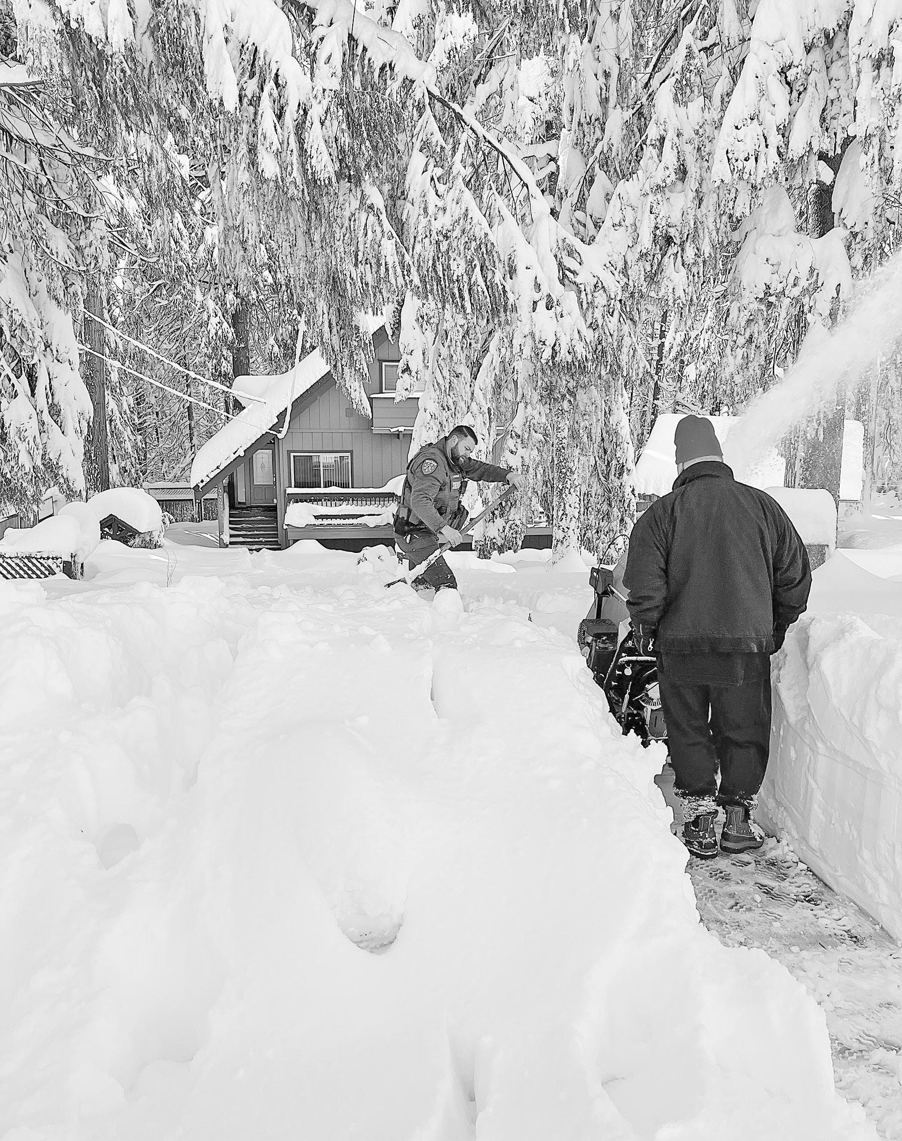 for people who are snowed in. This time he had to clear roadways for PG&E crews to get in because so many trees