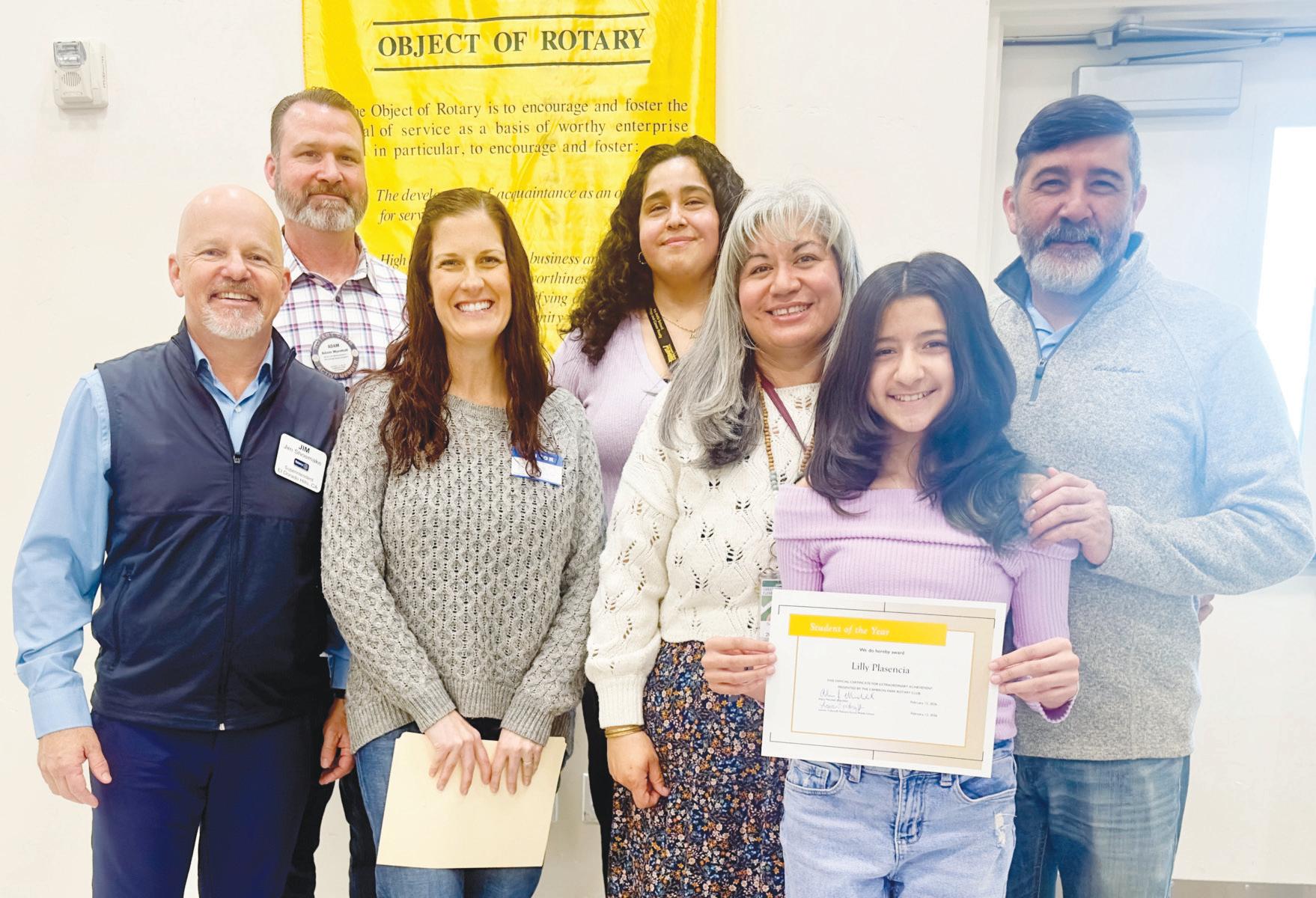 On Feb. 12, the Rotary Club of Cameron Park recognized Lilly Plasencia, a seventhgrade student at Pleasant Grove Middle