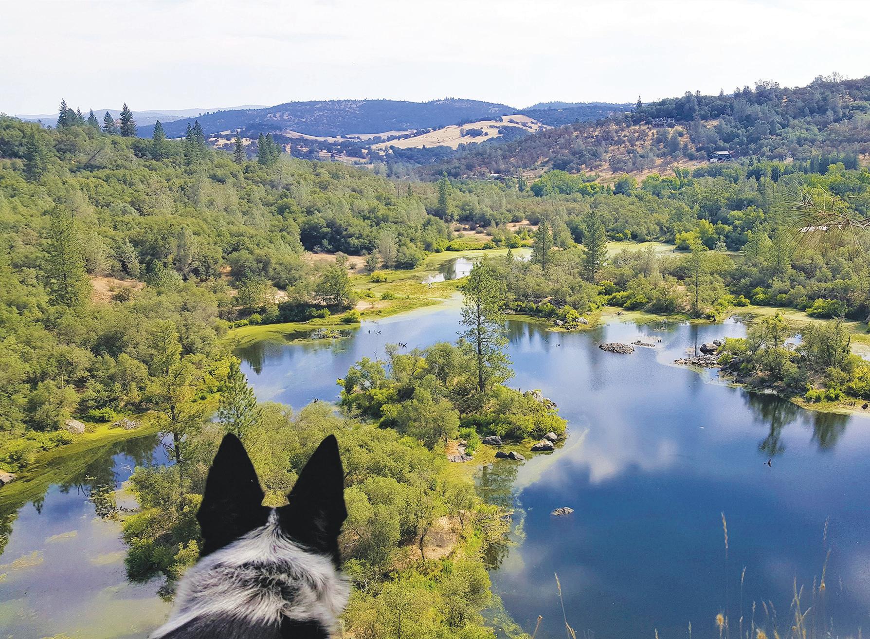 A wealth of wildlife emerges from the pond, bees buzzing among wildflowers as dragonflies, turtles, butterflies and geese share the water’s edge. The trail offers such views that even furry companions have to take a moment to take in the view.