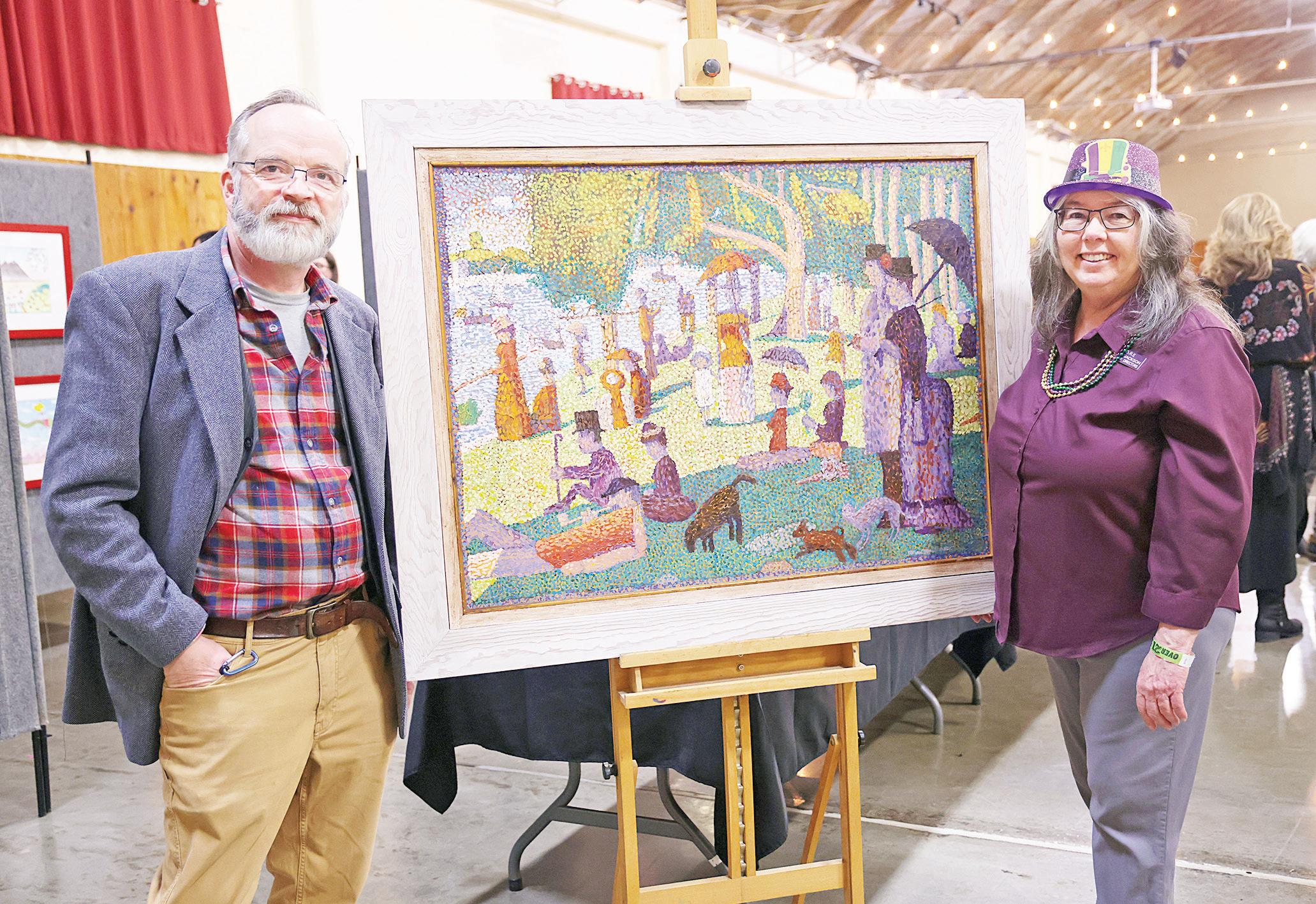 Afternoon at La Grande Jatte” by MORE client Michael Wallander. Yapp said the painting in the style of French post-Impressionist artist George Seurat and the technique is known as chromoluminarism and pointillism. The painting, with a $650 price tag, took Wallander around 4-5 months to complete. Find more event photos in Friday’s paper.