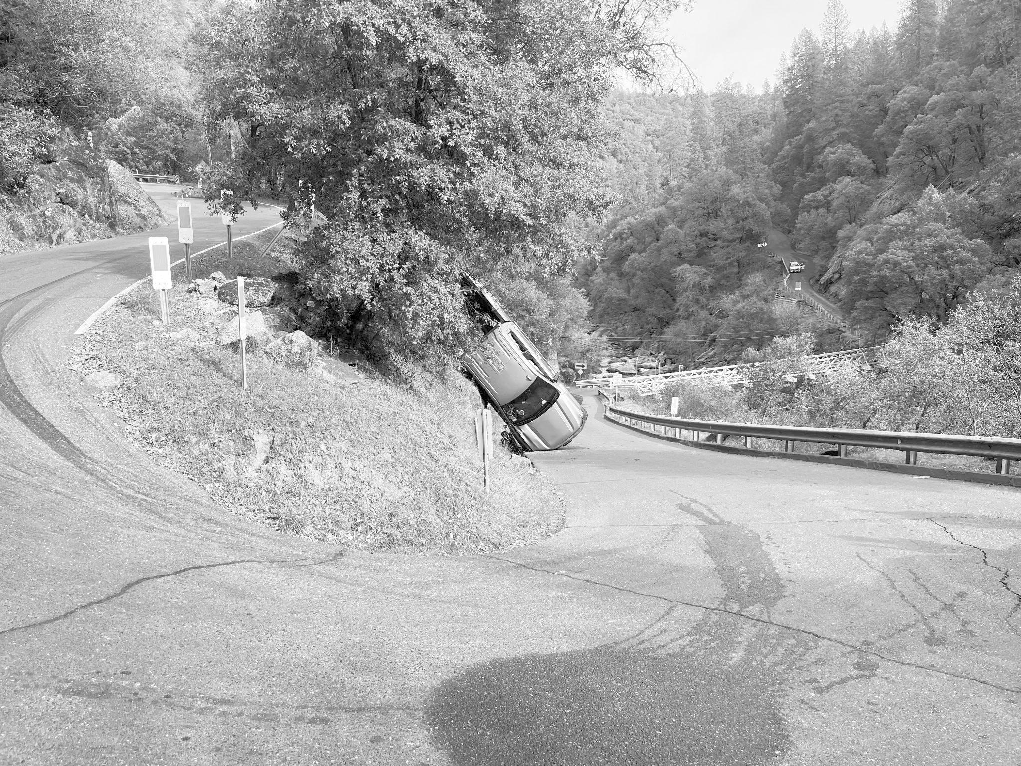 68-year-old Luz Brown of Placerville suddenly veered right and lost control of her gray GMC Sierra at around noon on Jan. 25, according to information provided by the California Highway Patrol – Placerville. The truck landed on its right front fender against the hillside in a