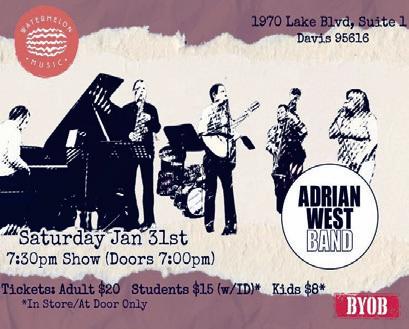 Adrian West Band per‐forms at The Melon Ball listening room in Davis. Six-piece band with Michael Echaniz on the Steinway Grand Piano. A mix of original acoustic rock & covers & jazz. BYOB! Watermelon Mu‐sic, 1970 Lake Boulevard, Davis. adrian@adrian west.com, 510-428-1035 Return of the Emcee XIV @ 9pm Brick & Mortar Music Hall, 1710 Mission Street, San Francisco