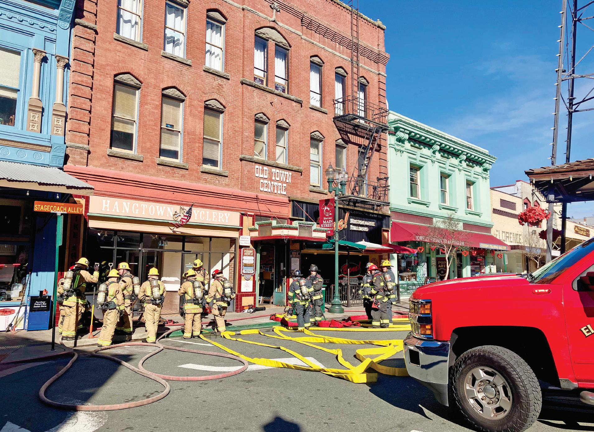 El Dorado County Fire Protection District Deputy Chief Andrew Lemos said firefighters were dispatched at 12:06 p.m. on Jan. 26 after heavy black smoke was seen near Highway 50 behind a business on Main Street, which is filled with historical buildings tightly packed together. Main Street was closed at Sacramento Street and Bedford Avenue while surrounding businesses were evacuated.