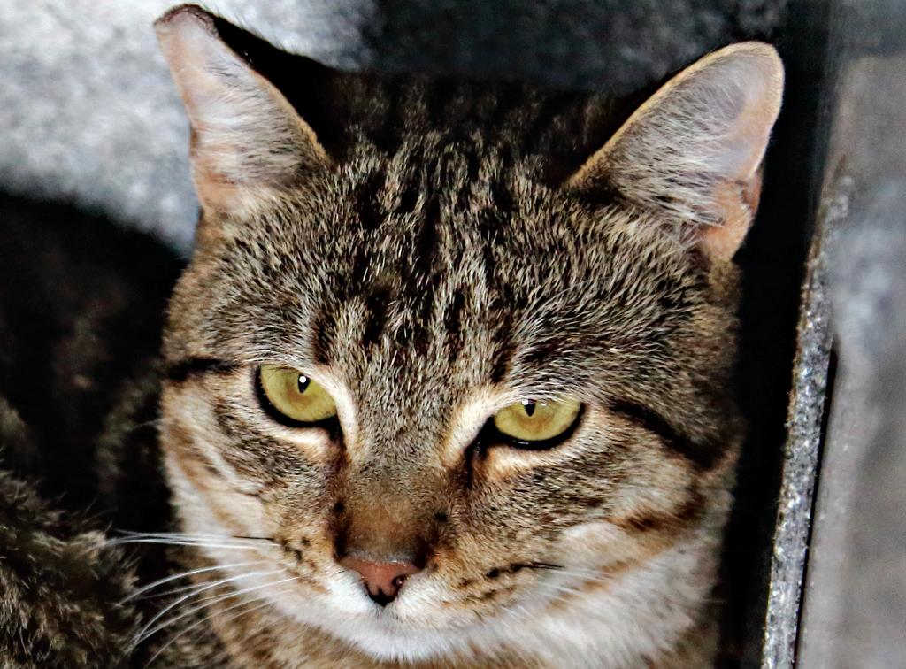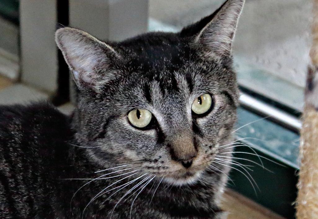 He will not ghost you. Stop by the shelter and meet this cool cat. 10 yr. DSH Grey tiger tabby.