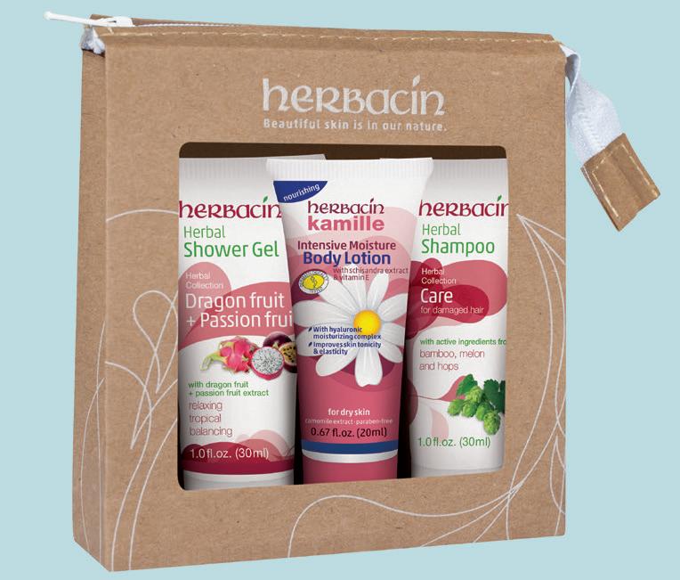 This Pamper Yourself Trio of mini tubes includes a selection of must-have products to cleanse and care for your skin and hair. Each product is dermatologically tested and vegan, with no parabens, mineral oils or synthetic colors. The set includes Herbal Shower Gel in dragon fruit and passion fruit, as well as the Herbal Shampoo Care and Herbacin Intensive Body Lotion.