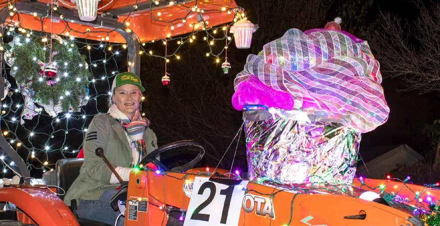 The first Lighted Tractor Pa rade first rolled down Main Street in 2015. Starting with 32 tractor entries, Winters residents lined up the street for some good, small-town fun. Since then, the novelty of tractors decked out with Christmas Lights in a parade has attracted thousands to the annual event. With the excep tion of 2020, when the Tractor Parade was paused due to the pandemic, the event has con tinued to grow year after year. In 2021, the event was extend ed to include a cocoa crawl and elf hunt the Friday before.