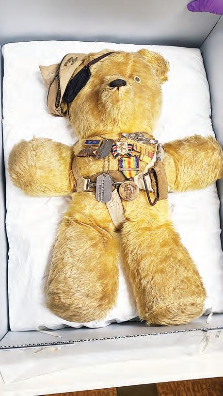 The National Museum of the U.S. Air Force identifies a teddy bear named Col. Elmer E. Elmer, the official mascot for the crew of the B-29 “Deacon’s Disciples,” a Superfortress that set a long-distance flight record from Hawaii to Washington.