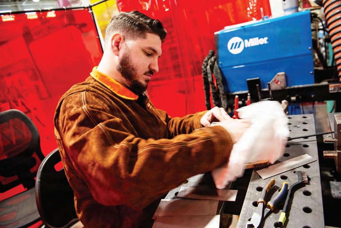 metals technology craftsman, wipes down the workspace prior to practicing welding at Travis Air Force Base, Feb. 11.