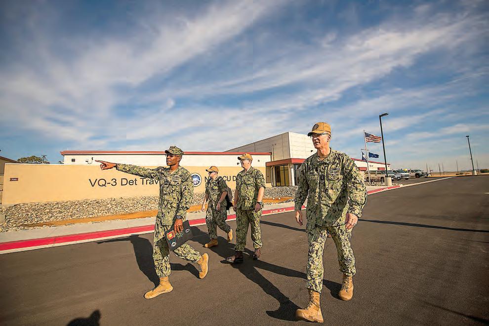 U.S. Navy Vice Adm. Yan cy Lindsey, Navy Installations Command commander, visited VQ-3 on Oct. 28 to get eyes on the new $64 million alert facility at Travis Air Force Base. Dur ing the visit, Lindsey toured the new facility, met with the sailors of VQ-3 and answered missionspecific questions for the securi ty personnel at the detachment.