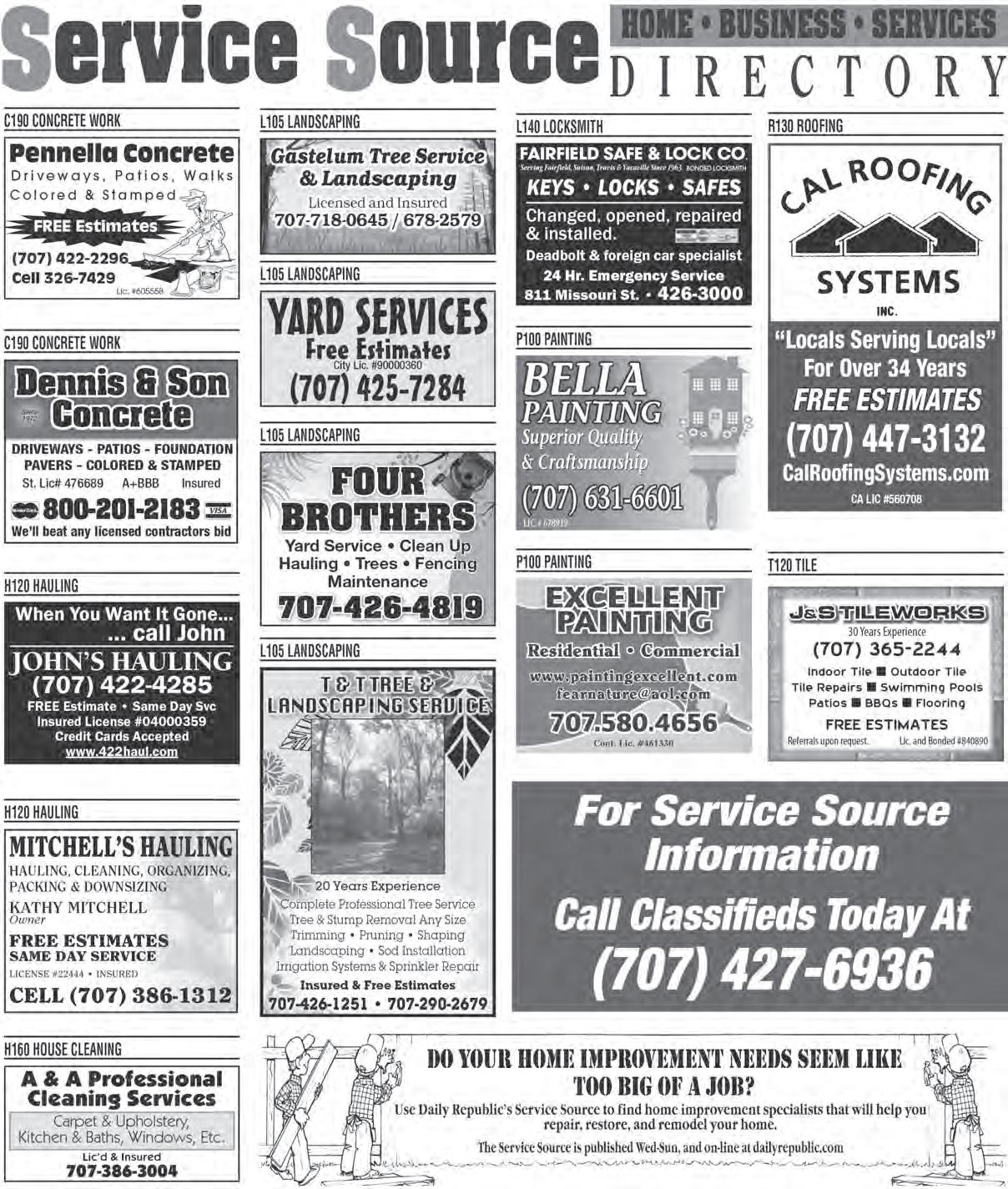 For advertising information about this director y, call Classifieds at 707-427-6973 or email: cgibbs@dailyrepublic.net