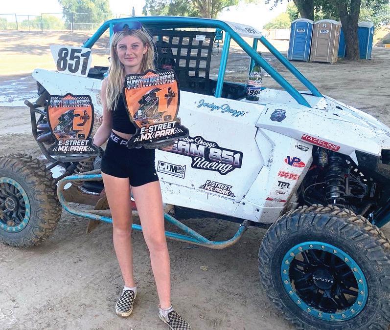 Jordyn Skaggs races her Polaris RS1 in a recent competition. Below, Skaggs showing o her awards from the weekend of Sept. 18 at E Street MX park.