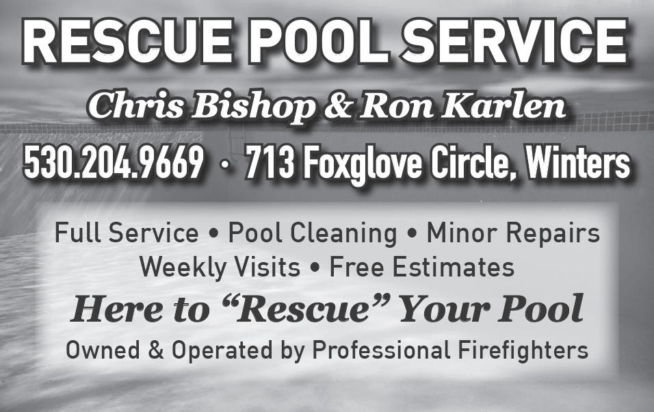 EXPRESS 2 Main St., Winters, CA 530.795.4503 buckhornsteakhouse.com 1 Main St., Winters, CA 530.795.2682 putahcreekcafe.com Service all makes & models Accept all major credit cards Family owned & operated 27990 County Road 90 Winters, CA 95694 www.pearcehvac.com State Contractor Lic# 864483 116 D Street Davis, CA 95616 530-798-5500 www.smith-funerals.com FD-992 WINTERS AGGREGATE 4499 Putah Creek Rd. (530) 795-2994 • Fruit Tree Soil • Moss Rock • Bulk Bagged Perlite • Blended Planting Soil • Large Selection of Flagstone We deliver friendly hometown service! 184 E. Grant Avenue, Winters (530) 795-1938 · Dry Cleaning · Laundry · Alterations CUSTOM CLEANERS $1 including tax Salmon in Putah Creek is big discussion News, Page 2 Meet the 2022 Homecoming Royal Court Features, Page 1 Volume 139, Number 39 — Locally-owned since 1884 Winters, Yolo County, California, Wednesday, September 28, 2022 The hometown paper of Woody Fridae Features ........................ B-1 Classifieds ................... B-4 Community .................. A-3 Eventos hispanos ....... A-6 Opinion ......................... B-3 Real Estate ................... B-2 Sports ........................... B-7 Index Date Rain High Low Sept. 21 .09” 76 60 Sept. 22 TRACE 78 55 Sept. 23 .00 82 57 Sept. 24 .00 88 55 Sept. 25 .00 94 56 Sept. 26 .00 96 58 Sept. 27 .00 95 51 Rain for week: 0.09 in. Season’s total: 0.99 in. Last sn. to date: 0.05 in. Weather Winters rainfall season began 7/1/22. Weather readings are taken at 9 a.m.