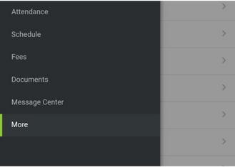 Inicie sesión en su cuenta del Portal para Padres Haga clic en la pestaña "Menú" a la izquierda y seleccione "Más".