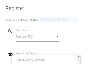 Elija su estado y luego busque su distrito escolar en el menú desplegable