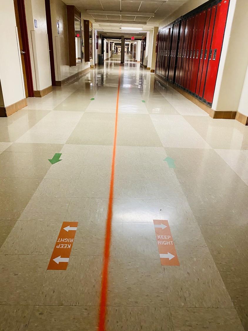 ◉ Los estudiantes no se congregarán - no se permitirán reuniones en el pasillo o baños.