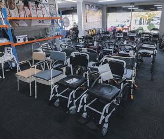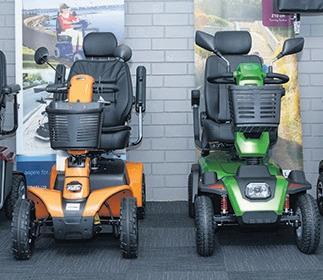 Our showrooms stock a wide variety of mobility equipment — motorised scooters, wheelchairs,