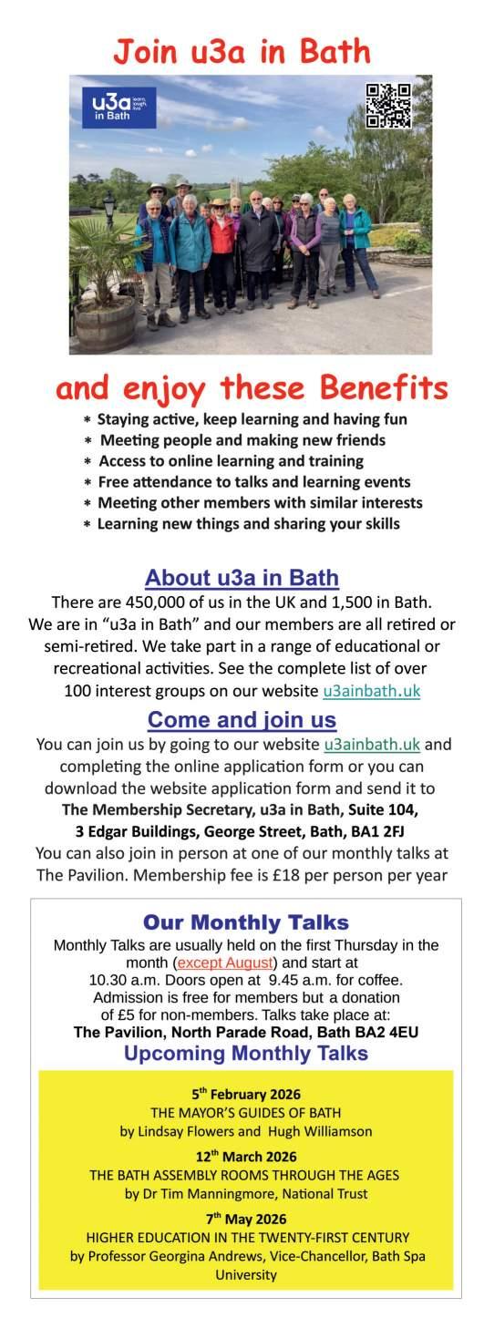 Disclaimer: Whilst every reasonable care is taken with all material submitted to The Bath Magazine, the publisher cannot accept responsibility for loss or damage to such material. Opinions expressed in articles are strictly those of the authors. This publication is copyright and may not be reproduced in any form either in part or whole without written permission from the publishers.