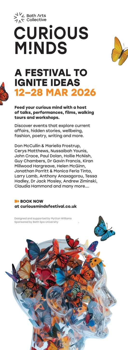 Curiosity opens doors. It sharpens attention, expands empathy and connects us to one another. This March, Curious Minds returns to Bath with two weeks of talks, film screenings, debates, music, workshops and walks, led by rising stars, award winners and internationally renowned names.