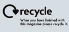 All paper used to make this magazine is taken from good sustainable sources and we encourage our suppliers to join an accredited green scheme. Magazines are now fully recyclable. By recycling magazines, you can help to reduce waste and contribute to the six million tonnes of paper already recycled by the UK paper industry each year. Please recycle this magazine, but if you are not able to participate in a recycling scheme, then why not pass your magazine on to a friend or colleague.