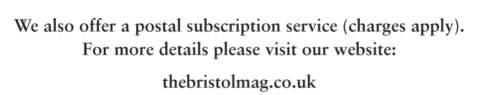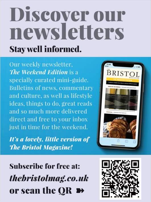 For advertising enquiries, please contact us on 0117 974 2800 Email: sales@thebristolmagazine.co.uk