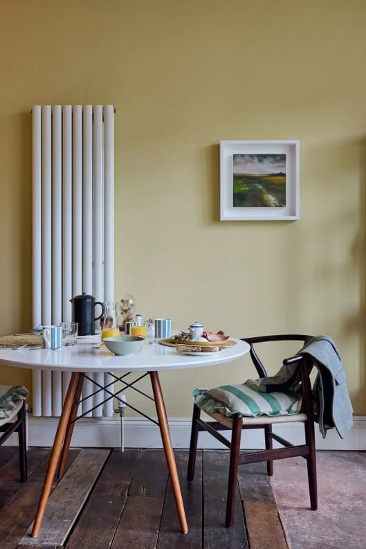 “All you need is a stash of slim mouldings from a local hardware store (my nearest is Bishopston Hardware) and enough of a maths brain to plot out how to configure them into frames, and decide where you want to place them on the walls. Once mitre cut, fixed to the wall and caulked you really can paint them in any colour you like – either the same as the wall itself, or picked out in a contrasting colour for emphasis. In the “Wuthering Heights” set there’s a beautiful duck egg blue. Try Lie-In emulsion by eco brand COAT Paints to recreate the look.