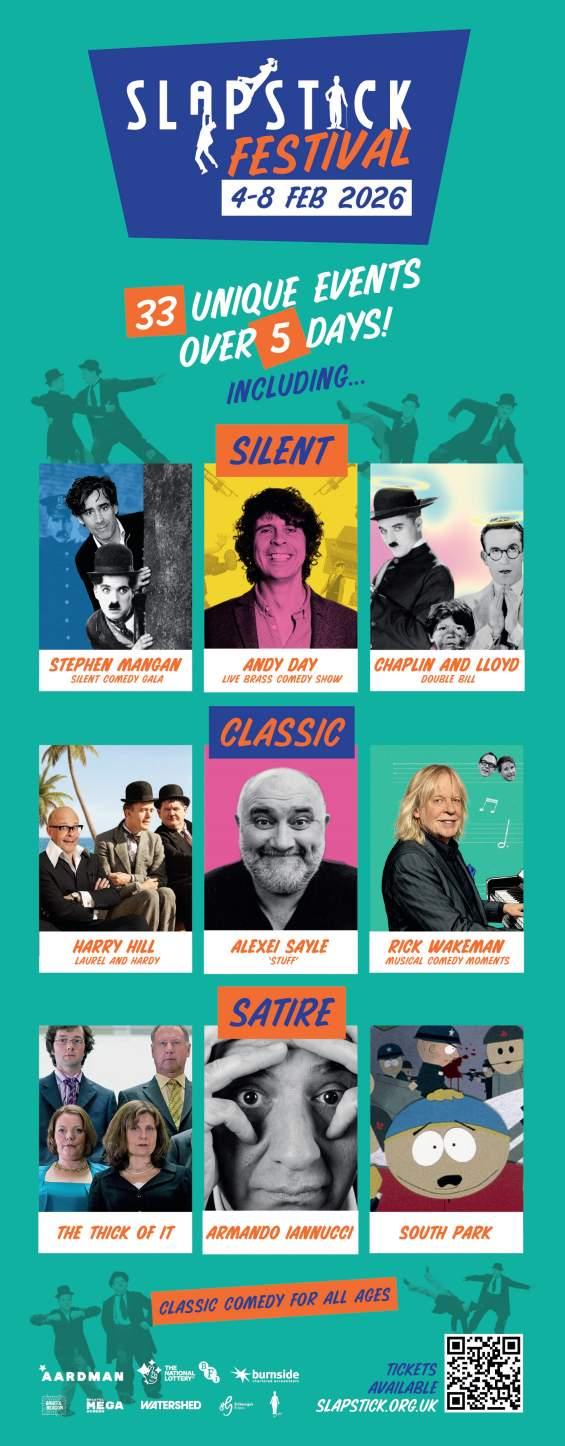 Slapstick Festival returns from 4-8 February with more than 30 events celebrating screen comedy in all its forms: from silent-era masterpieces to classic sitcoms, anarchic stand-ups and big-screen favourites. Highlights include a spectacular Silent Comedy Gala with live music from Rick Wakeman and the European Silent Screen Virtuosi, Laurel & Hardy’s (pictured) early brilliance to their final feature, the sharp wit and innovation of Alexei Sayle, the legacy of Lee Mack’s long-running sitcom and a host of specially curated classic comedy events, including two with Lucy Porter (read our interview with her on page 22). More programme into at slapstick.org.uk