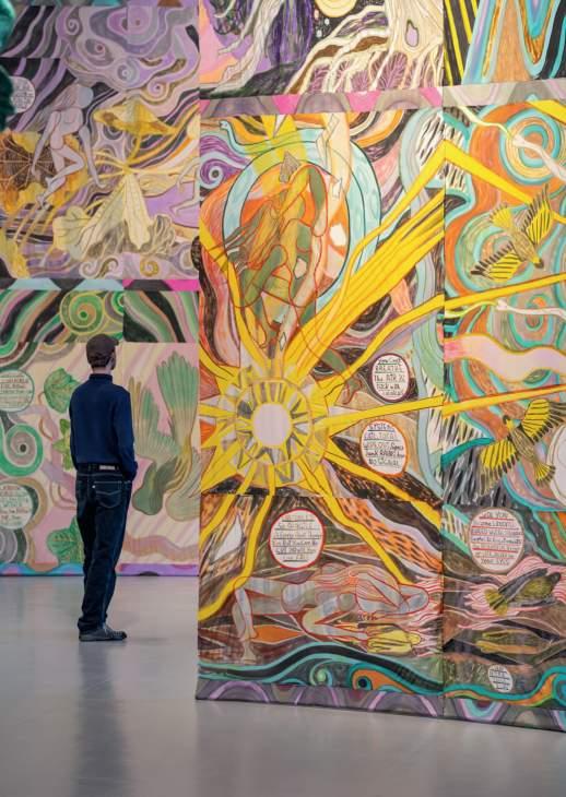 Image credits: Left, Ellis Brigham; right, Emma Talbot, Are You a Living Thing That Is Dying or a Dying Thing That Is Living , 2025. Installation view, Copenhagen Contemporary, 2025. Photo: David Stjernholm