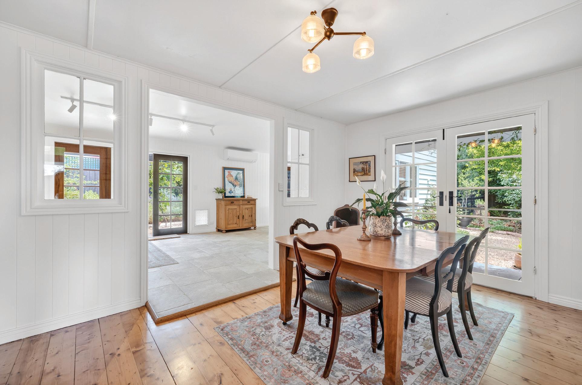 The flexible floorplan offers three generous bedrooms, with the option of a fourth bedroom, study or additional living space. Open-plan living and a renovated kitchen with Spanish porcelain floor tiles and induction cooktop flow to the dining area, while the front lounge is warmed by a Ned Kelly wood heater.